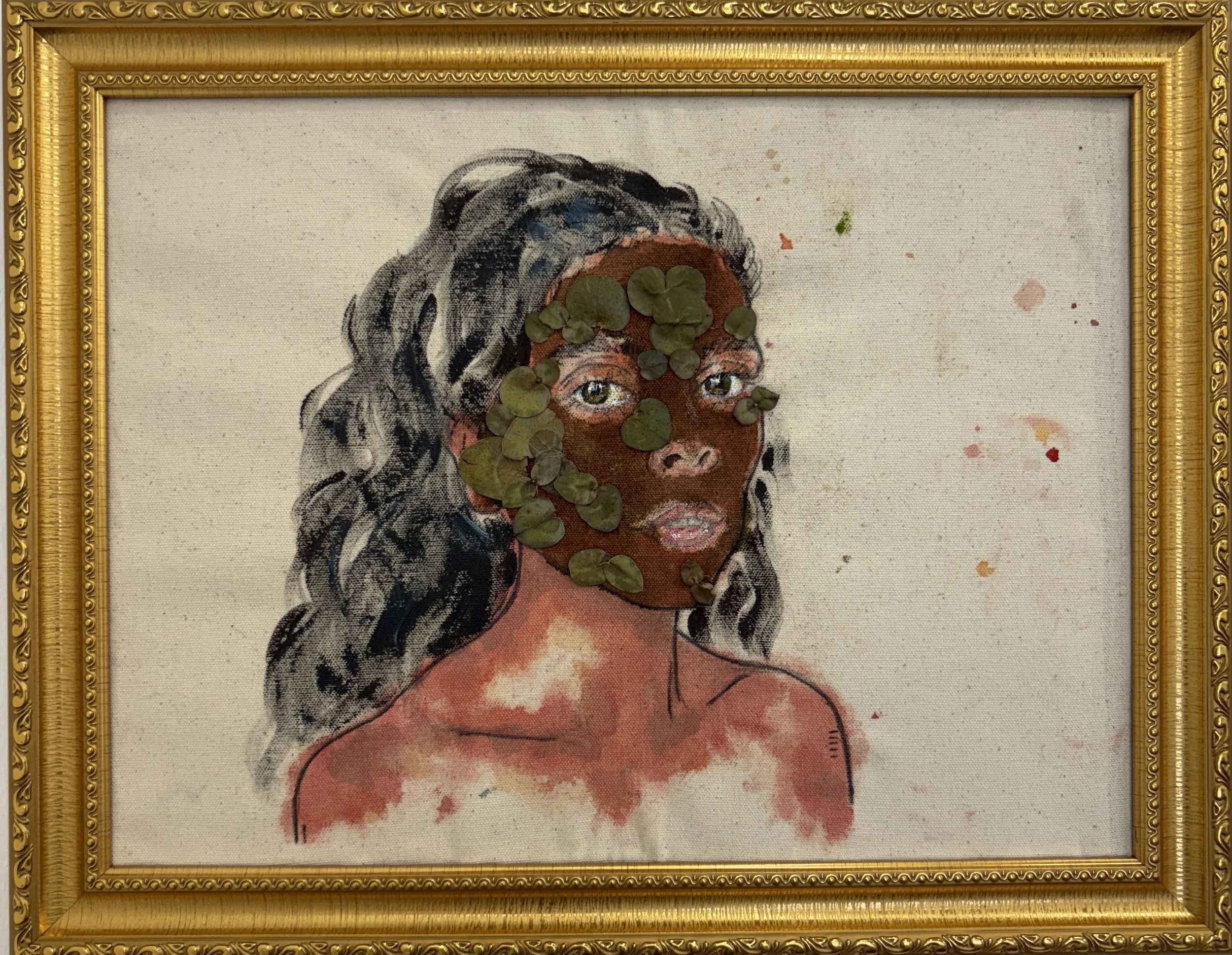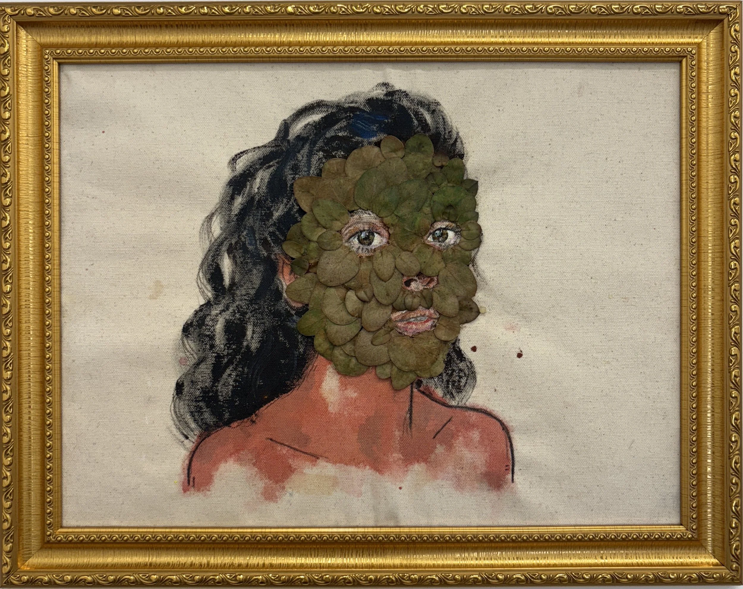 Barro, tal vez. | Coffee, Acrylic and Eucalyptus leaves. | 12 inches x 16 inches