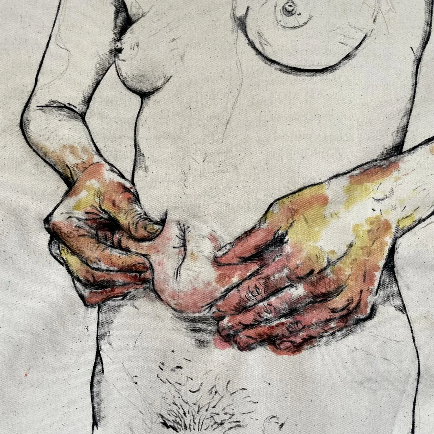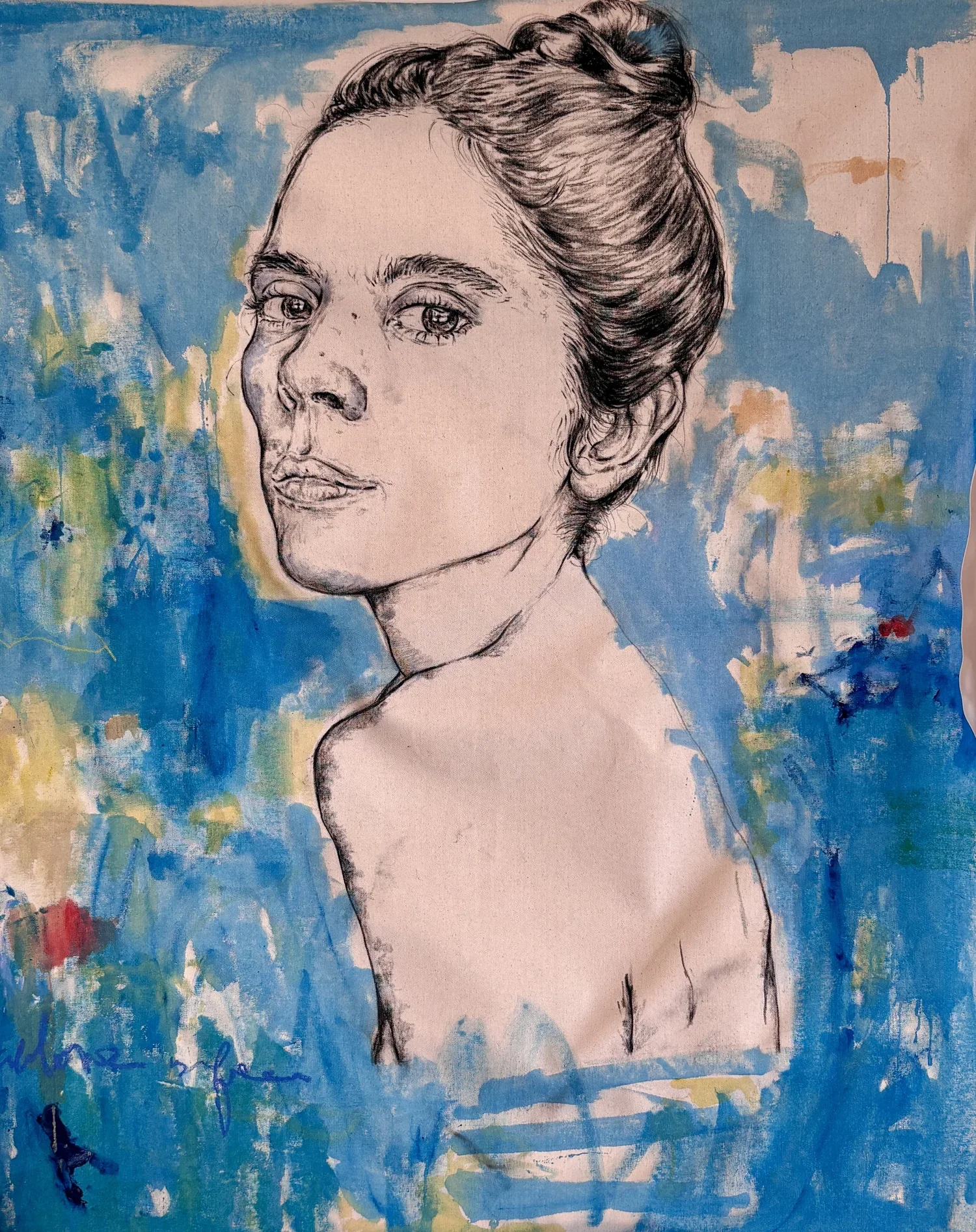 In water. Like Water. | Charcoal, tea and acrylic on untreated canvas.